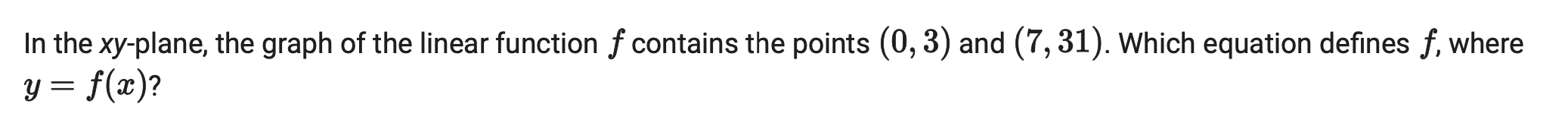 Linear functions hay hàm số tuyến tính là dạng cực kì, cực kì quan trọng trong SAT, lý thuyết thì đơn giản và quen thuộc với các học sinh Việt, nhưng dạng bài thì vô cùng đa dạng.